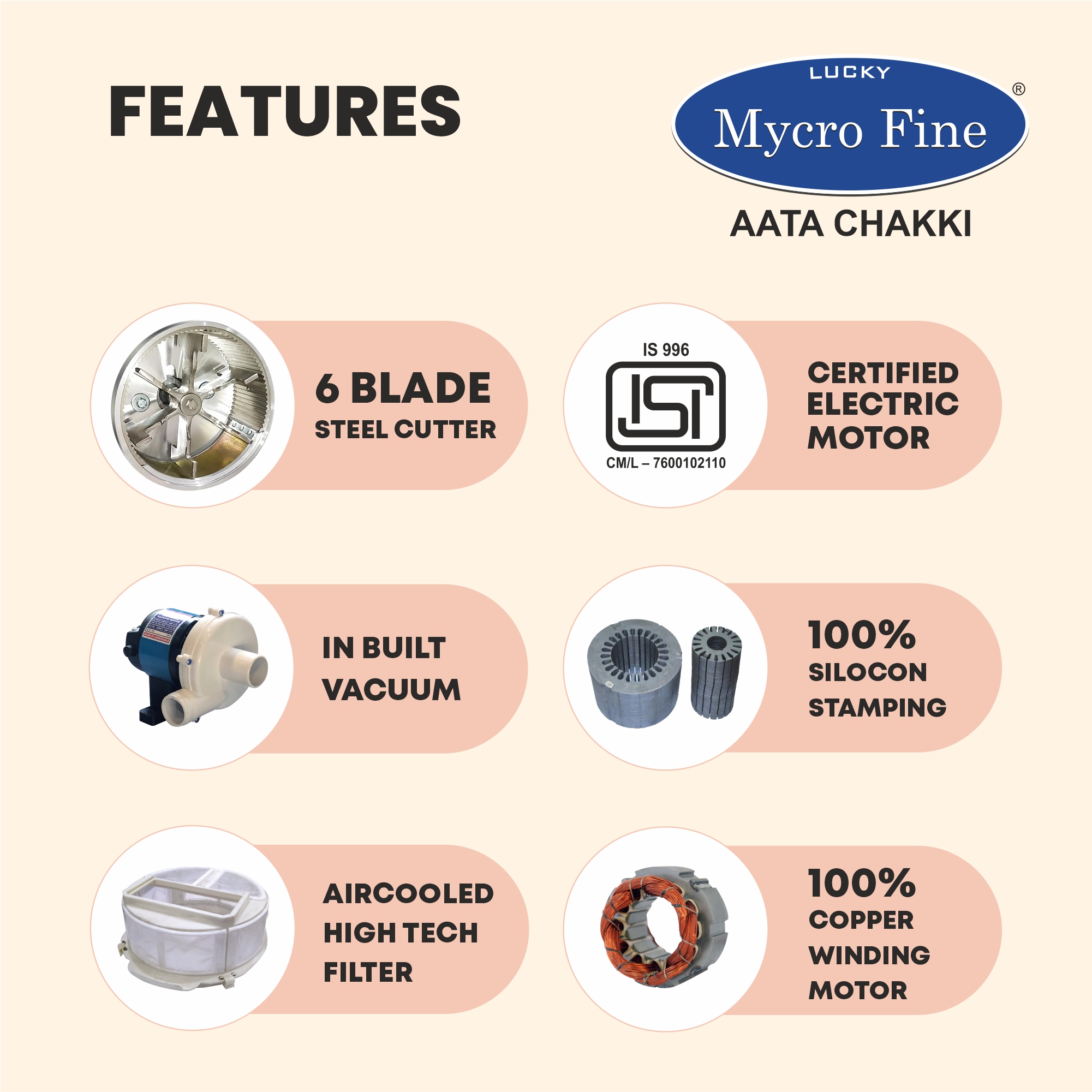 - Special heavy-duty Jali to grind finely (0 to 2 Jali)