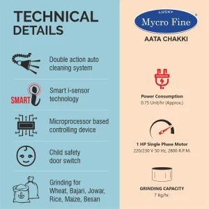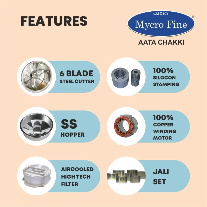 Lucky Mycrofine Super Star Plus Aata Chakki 6.5 Kg Fully Automatic Domestic Flour Mill